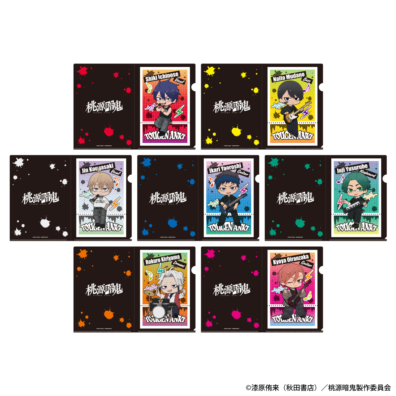 TVアニメ「桃源暗鬼」バンドver.ミニキャラ描き起こしのクリアファイルです。
