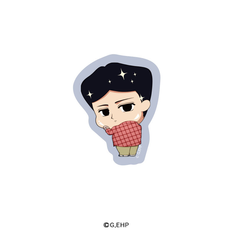おこのみ太郎風メイクのキャストたちの描き起こしイラストを使用した、トレーディングダイカットステッカーです。(全6種)